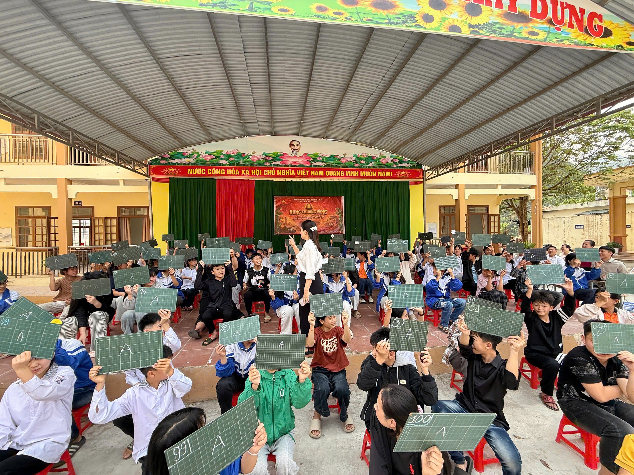 Thực hiện kế hoạch năm học 2025–2026 và chỉđạo của Ban Giám hiệu, chiều ngày 06/4/2026, Trường TH&THCS Bằng Hữu, xã Bằng Mạc, tỉnh Lạng Sơn đã tổ chức thành công buổi ngoại khóa “Rung chuông vàng” với chủ đề “Âm vang sử Việt” do Tổ Khoa học - Xã hội thực hiện.