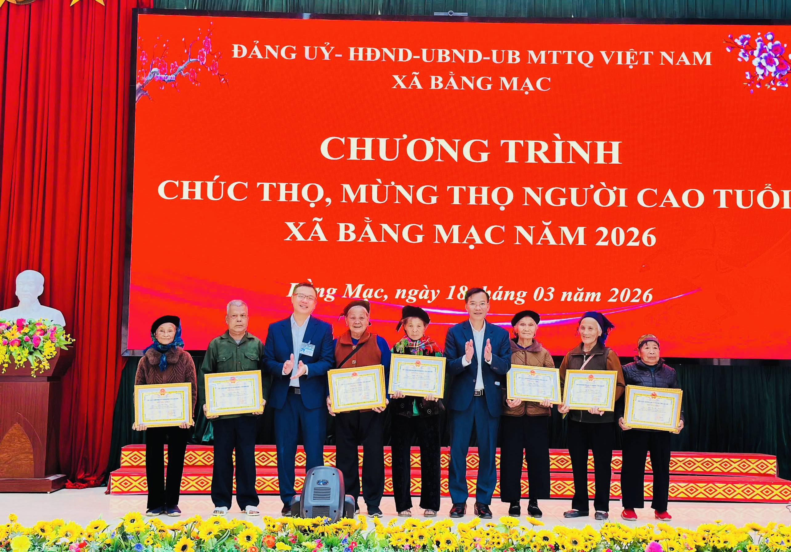 Ngày 18/3/2026, UBND xã Bằng Mạc long trọng tổ chức Lễ chúc thọ, mừng thọ người cao tuổi trên địa bàn xã năm 2026.