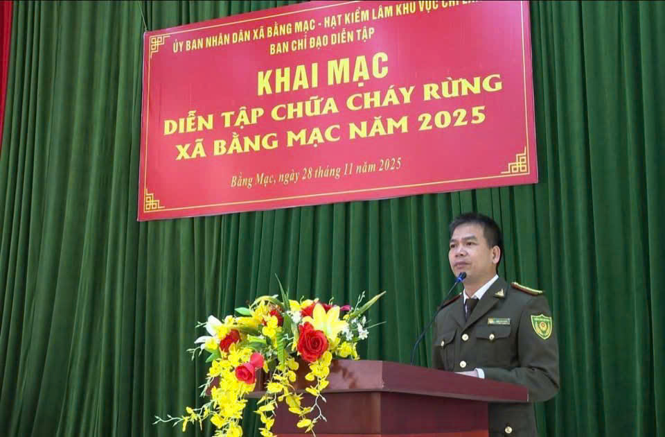 Sáng ngày 28/11/2025, Ban Chỉ đạo diễn tập xã Bằng Mạc phối hợp với Hạt Kiểm lâm khu vực Chi Lăng tổ chức diễn tập thực binh phòng cháy, chữa cháy rừng tại khu vực đập Vài Cà, thôn Phúc Lũng. Tham dự có đại diện Chi cục Kiểm lâm tỉnh, Hạt Kiểm lâm khu vực Chi Lăng, lãnh đạo xã và các lực lượng PCCCR trên địa bàn.