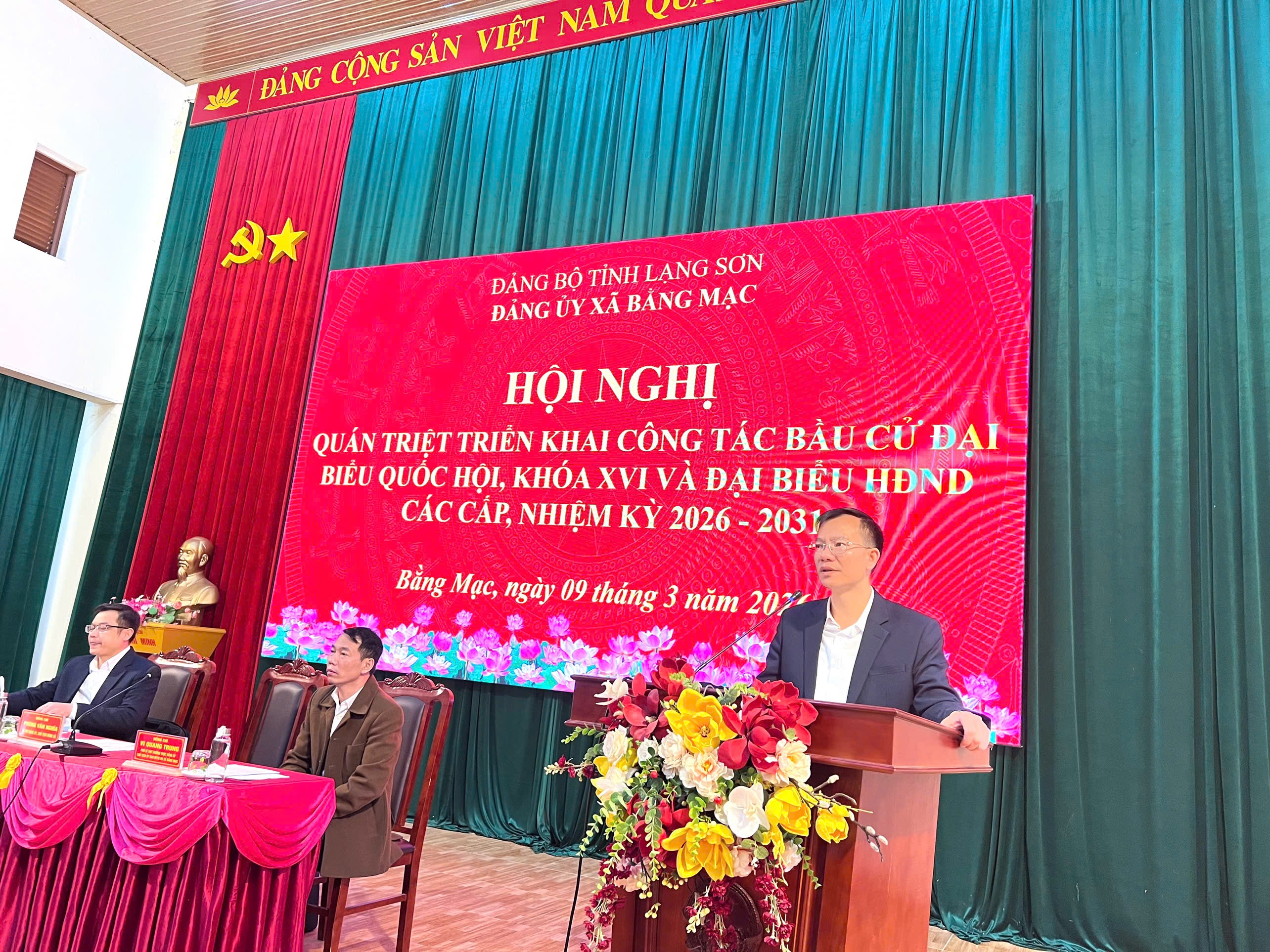 Ngày 09/3/2026, Đảng ủy xã Bằng Mạc tổ chức hội nghị quán triệt, triển khai công tác bầu cử đại biểu Quốc hội khóa XVI và bầu cử đại biểu HĐND các cấp nhiệm kỳ 2026–2031.