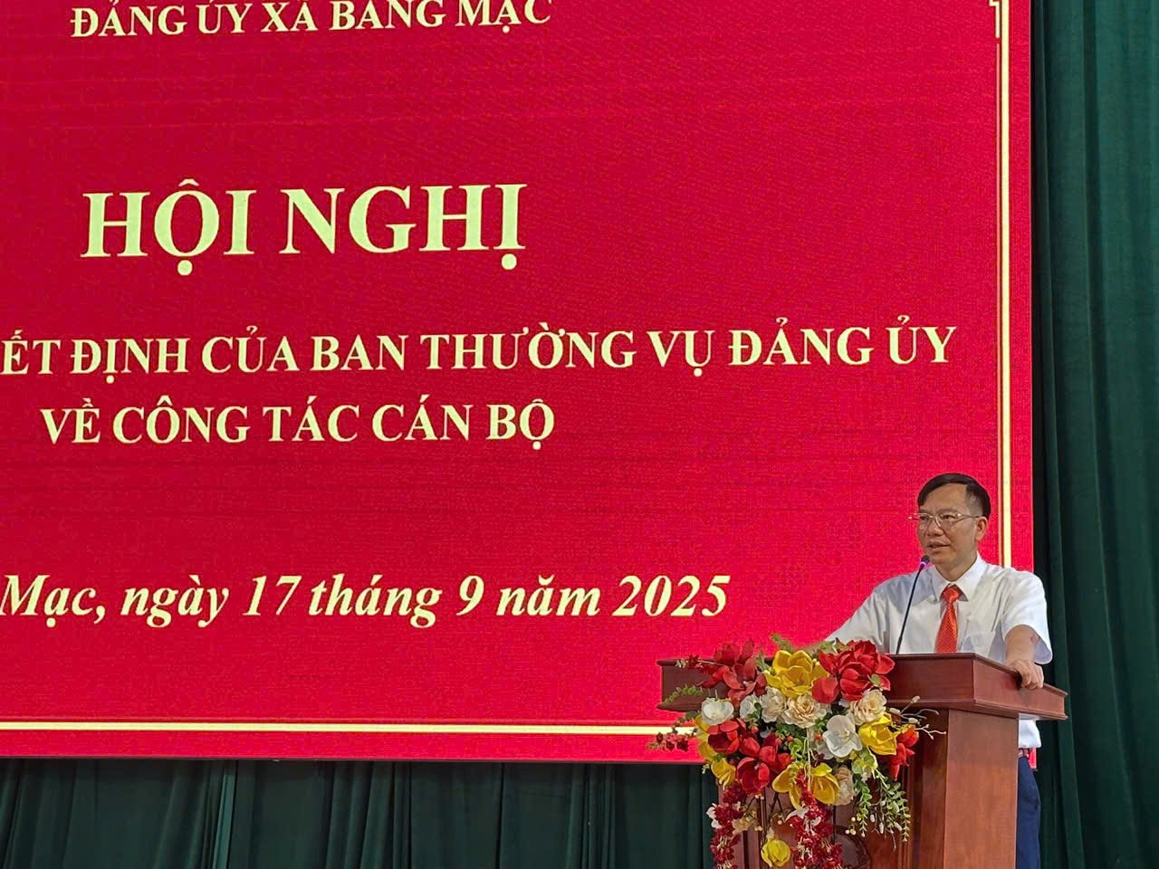 Ngày 17/9/2025, Ban Thường vụ Đảng ủy xã Bằng Mạc đã tổ chức Hội nghị về công tác cán bộ nhằm kiện toàn đội ngũ, đáp ứng yêu cầu nhiệm vụ trong tình hình mới.