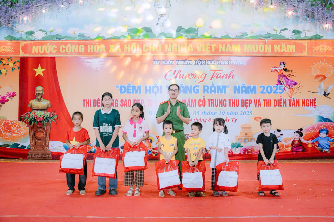 Khép lại chương trình, Ban Tổ chức đã trao 21 suất học bổng cho các em học sinh có thành tích học tập xuất sắc và trúng tuyển vào các trường đại học chính quy năm học 2024–2025. Tặng 40 suất quà từ Quỹ Bảo trợ trẻ em được trao cho các em có hoàn cảnh khó khăn; 20 suất quà của Công an xã Bằng Mạc gửi tặng các em thiếu nhi đặc biệt khó khăn; cửa hàng điện thoại Mạnh Tường cũng dành nhiều phần quà ý nghĩa chia sẻ cùng các em trong dịp Tết Trung thu này.
