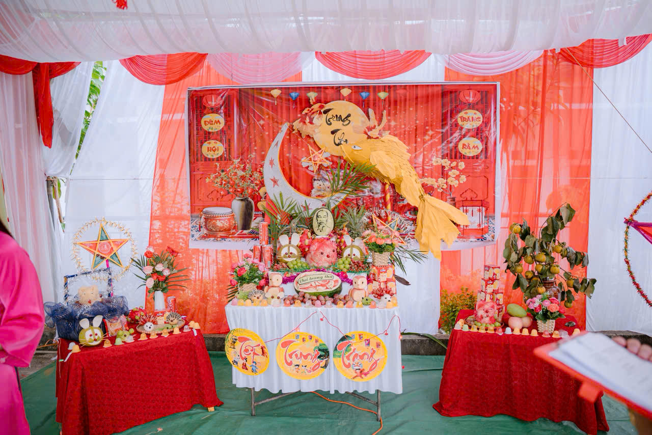 Ngay từ đầu giờ chiều, khu vực sân trường Tiểu học và Trung học sơ sở đã rực rỡ cờ hoa, đèn lồng và âm thanh náo nức của các đội tham gia “thi đèn ông sao đẹp và thi Trưng bày mâm cỗ đẹp”.