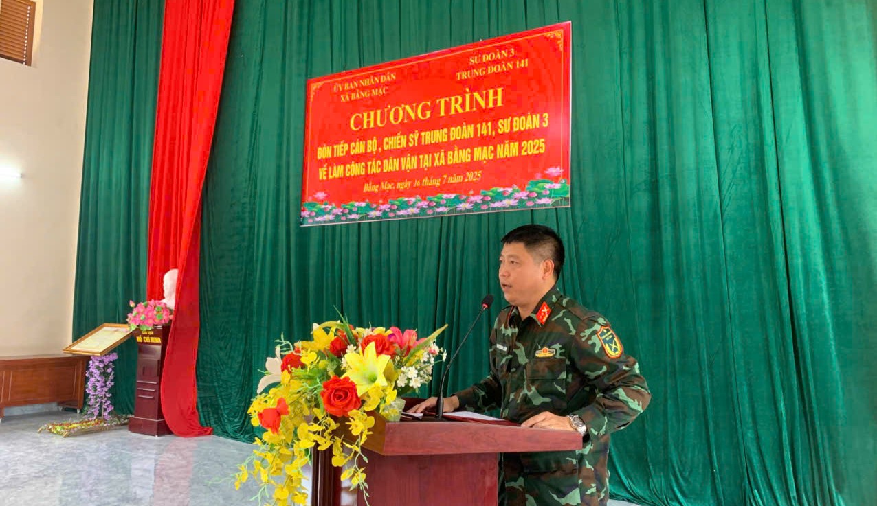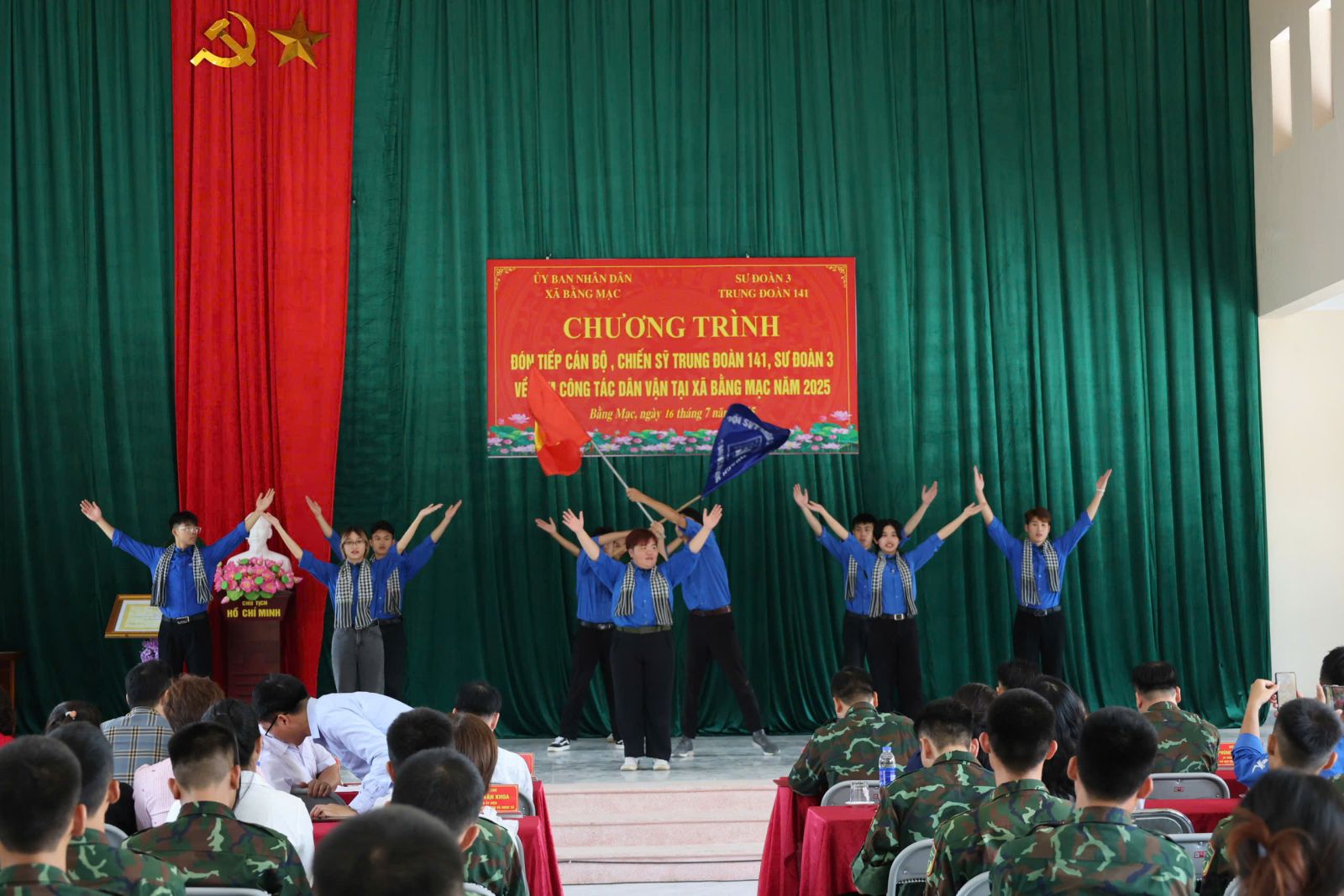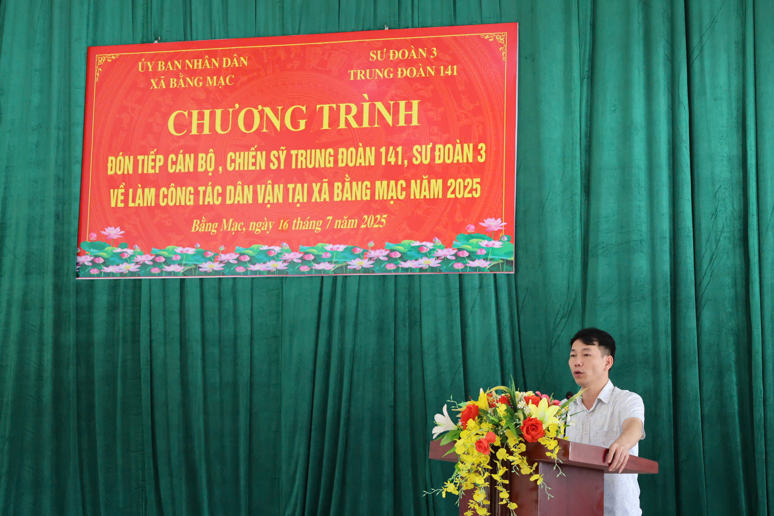 Sáng ngày 16/7/2025 tại nhà văn hóa xã Bằng Hữu (cũ)Uỷ ban nhân dân xã Bằng Mạc tổ chức Chương trình đón cán bộ, chiến sỹ Trung đoàn 141 Sư đoàn 3 về làm công tác dân vận năm 2025.