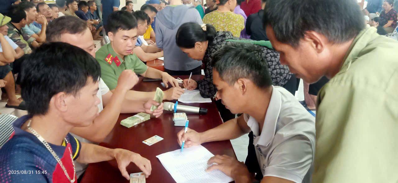 Tổng số hộ theo Quyết định cấp kinh phí: 2.860 hộ với 13.641 nhân khẩu; Tổng kinh phí theo Quyết định dự toán phải chi: 1.364.100.000 đồng.Tính đến 18 giờ 00 phút ngày 31/8/2025 đã giải ngân 1.145.400.000 đồng (đạt 84%), Theo hình thức tiền mặt: 1.145.400.000 đồng, hiện tại các điểm vẫn đang thực hiện phát quà trực tiếp cho người dân.
