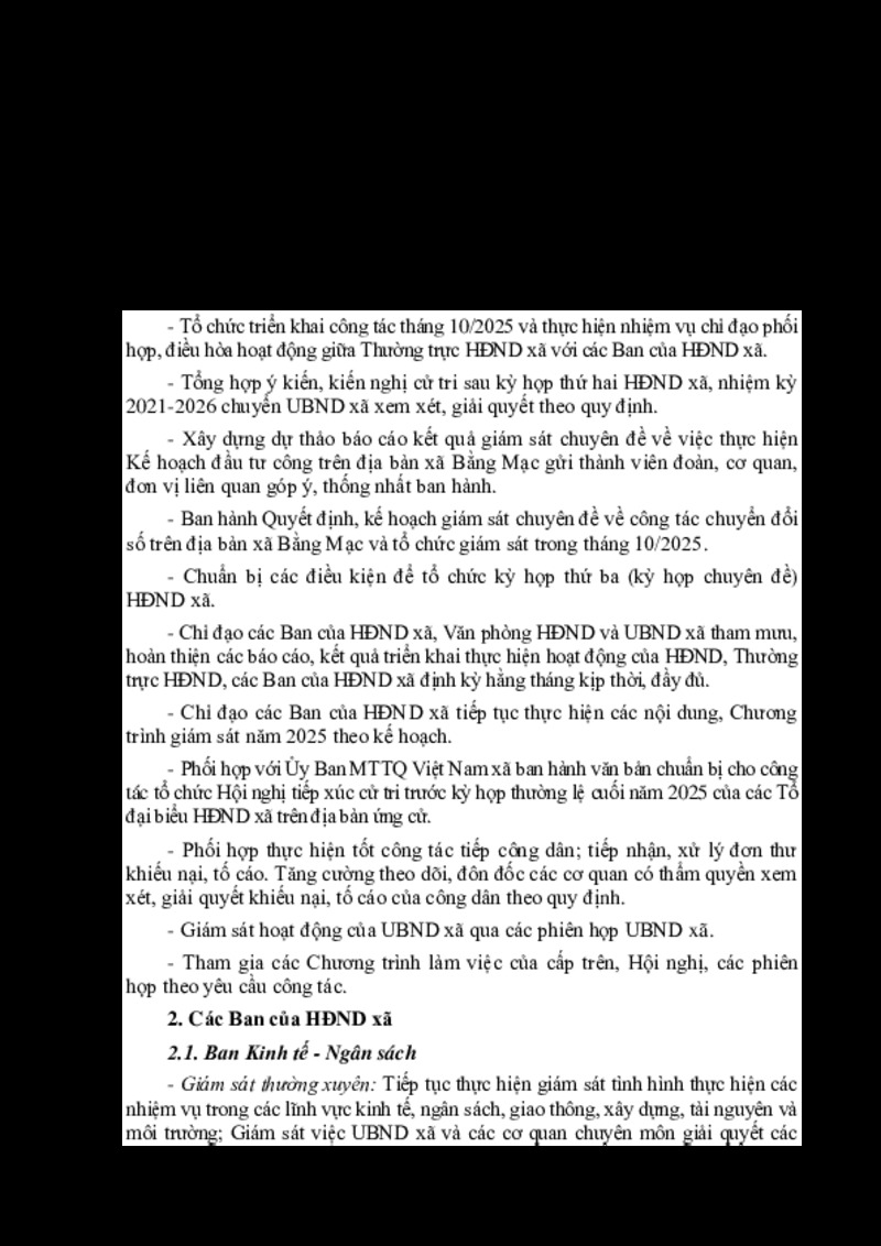 | Tiêu đề văn bản | Chương trình công tác HĐND xã Bằng Mạc tháng 10 năm 2025 | ||