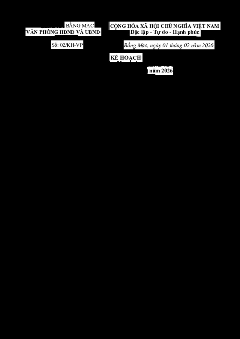 Kế hoạch Cải cách hành chính Văn phòng HĐND và UBND xã Bằng Mạc, tỉnh Lạng Sơn năm 2026
