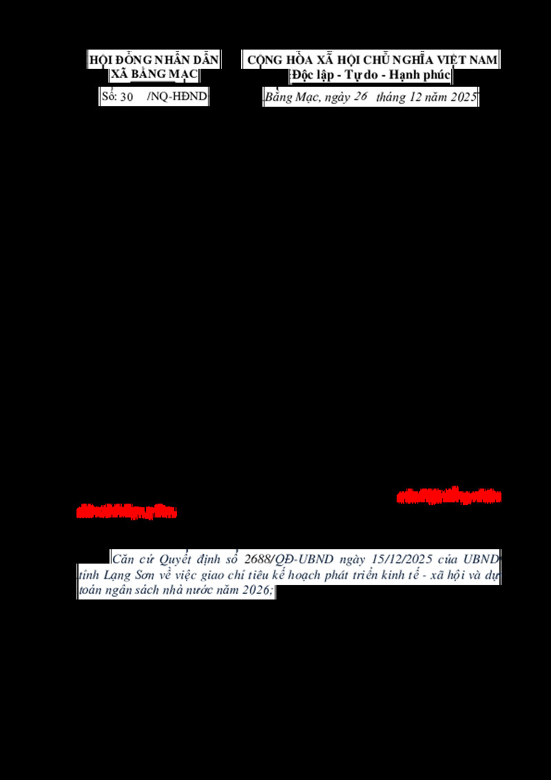 Tiêu đề văn bản Nghị quyết Về kế hoạch vốn đầu tư công năm 2026 xã Bằng Mạc