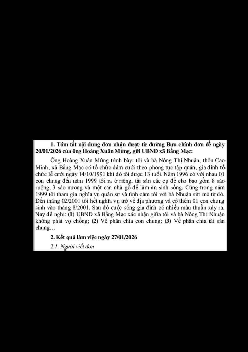 | Tiêu đề văn bản | Thông báo kết quả xem xét, xử lý đơn đề ngày 20/01/2026 của ông Hoàng Xuân Mừng, thường trú tại thôn Long Thịnh, xã Quốc Khánh, tỉnh Lạng Sơn | ||