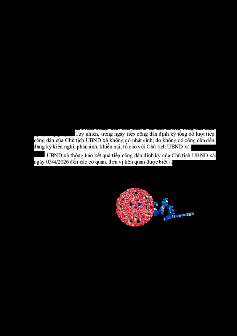 | Tiêu đề văn bản | Thông báo kết quả tiếp công dân định kỳ ngày 03/4/2026 của Chủ tịch UBND xã Bằng Mạc | ||