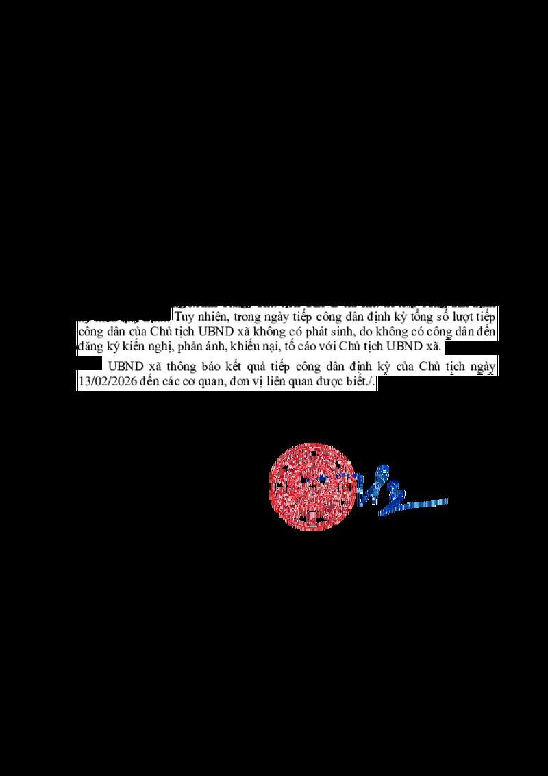 | Tiêu đề văn bản | Thông báo kết quả tiếp công dân định kỳ ngày 13/02/2026 của Chủ tịch UBND xã Bằng Mạc | ||